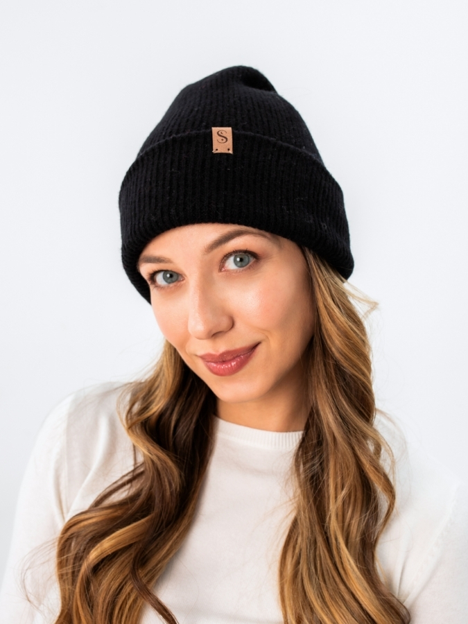 Wełniana czapka z jedwabną podszewką – Czarny