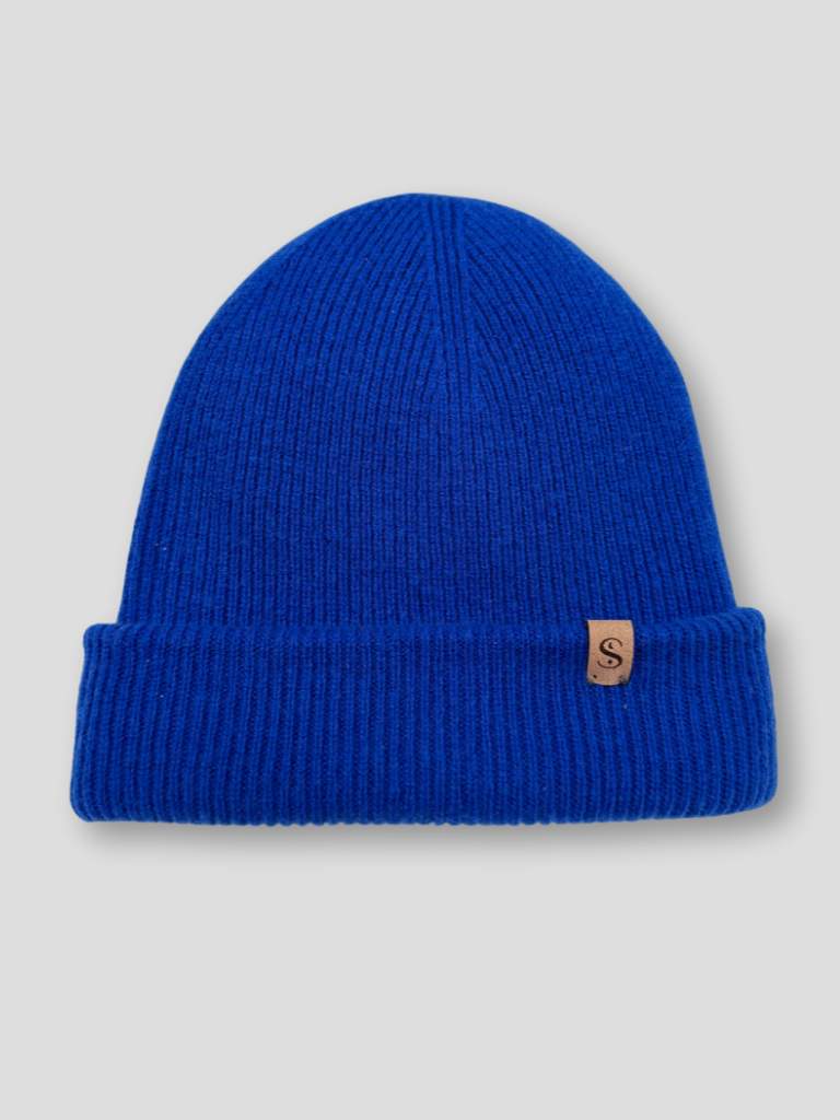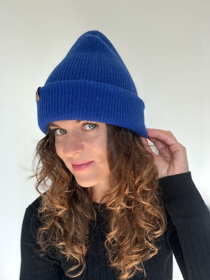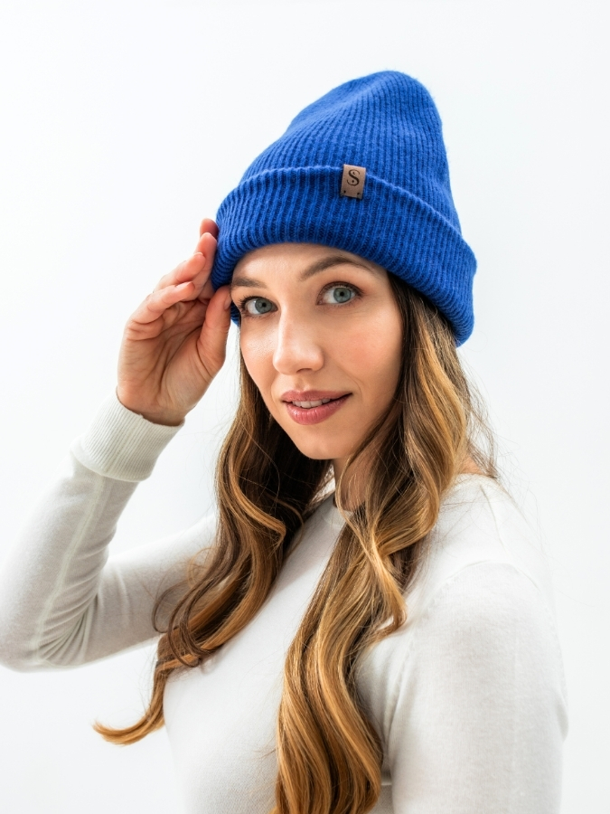 Wełniana czapka z jedwabną podszewką – Kobaltowa