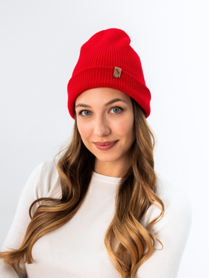 Wełniana czapka z jedwabną podszewką – Koralowa Czerwień