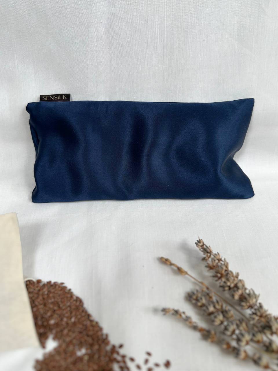 Relaksacyjny woreczek na oczy uszyty został z naturalnych surowców najwyższej jakości. Wewnętrzny woreczek uszyliśmy z surowej bawełny organicznej, a całość została otulona woreczkiem uszytym z najwyższej jakości jedwabiu morwowego o splocie satynowym. Zarówno obszycie jak i wypełnienie stanową wyłącznie naturalne materiały, co czyni go wyjątkowo delikatnym dla skóry i idealnym do naturalnej relaksacji. Woreczki wypełniliśmy organicznym ziarnami siemienia lnianego. Na Twoje życzenie możemy do wypełnienia dodać suszony kwiat lawendy, który wzbogaci kompres o relaksujący aromat.