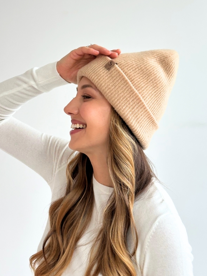 Wełniana czapka z jedwabną podszewką – Beżowy
